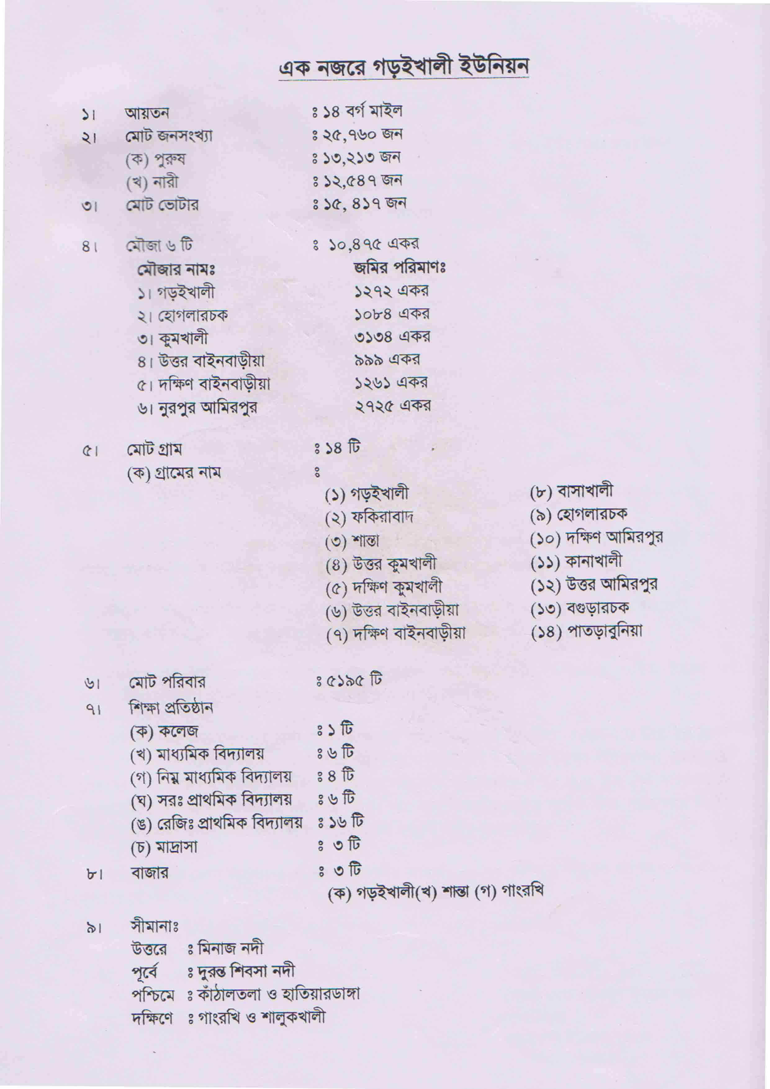 ক) নাম – ১০ নং গড়ইখালী ইউনিয়ন পরিষদ।